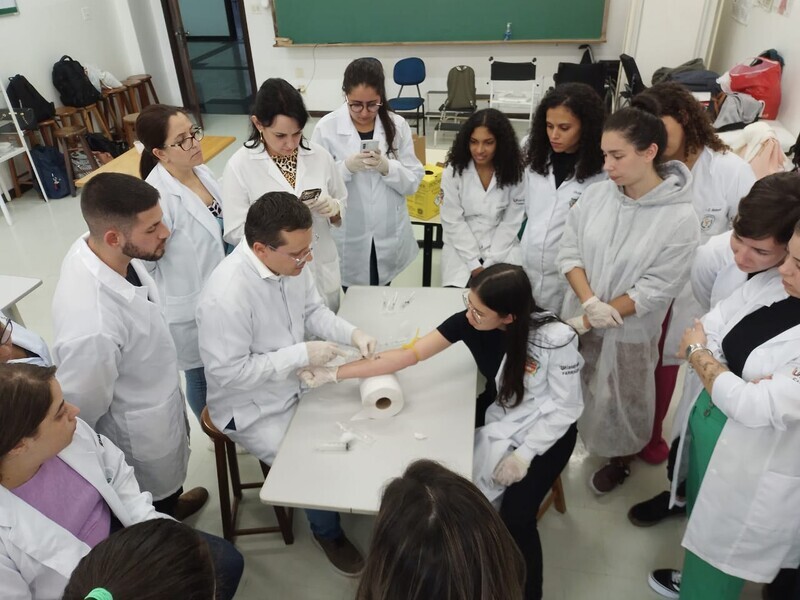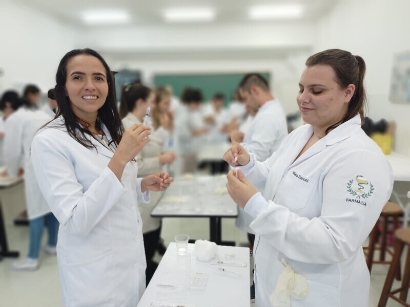 A capacitação aconteceu em dois momentos: a parte teórica e a prática, onde os acadêmicos puderam aplicar tudo que aprenderam. A aplicação de injetáveis é uma das atividades inerentes à profissão farmacêutica e pode ser realizada por qualquer profissional, mas requer atualização constante. O curso aborda toda a fundamentação relacionada aos conhecimentos necessários sobre as legislações, técnicas, procedimentos e biossegurança para aplicação de produtos injetáveis.